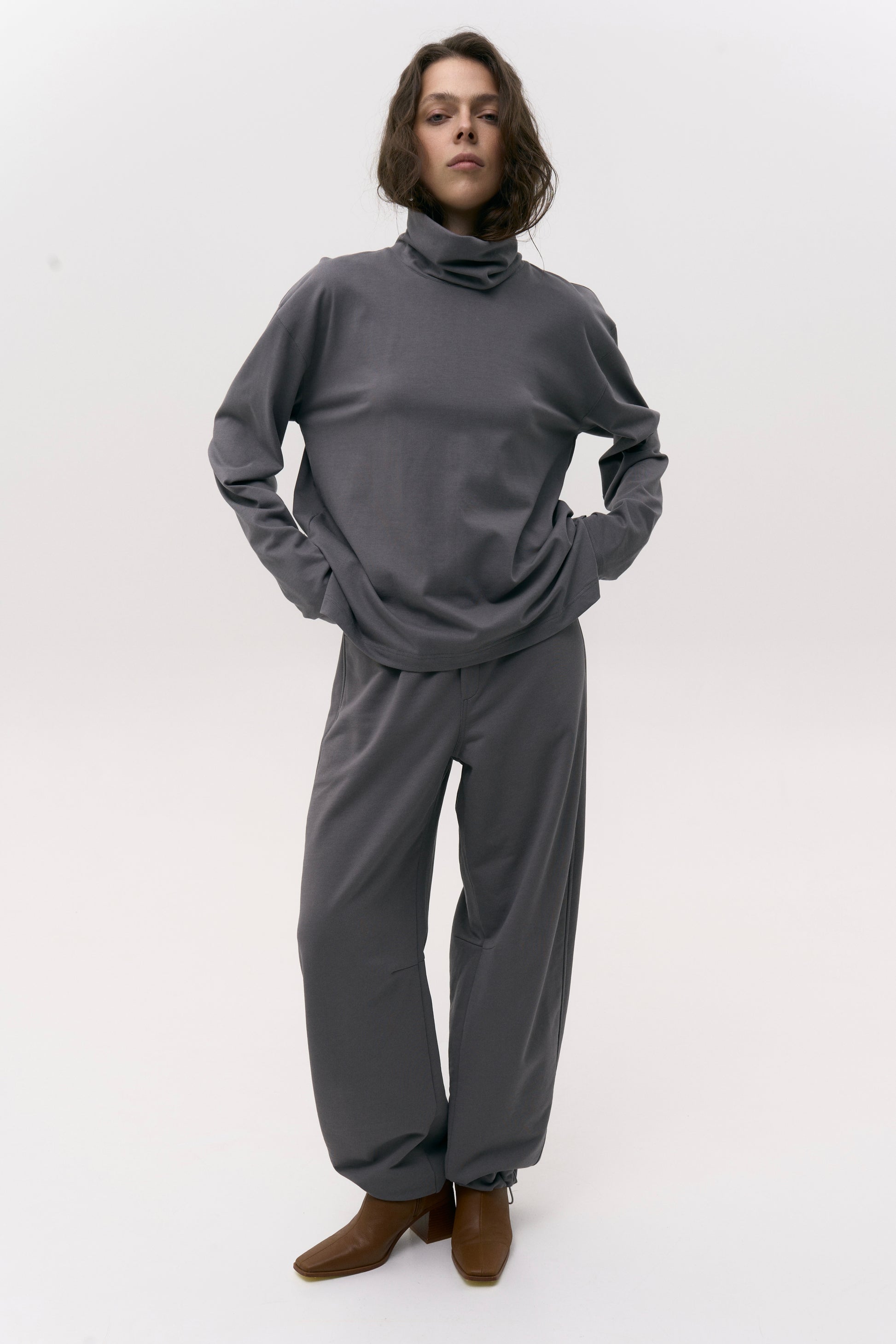 Лаконічний оверсайз лонгслів, що поєднує в собі мінімалізм форми та максимальний комфорт. Виконаний із 100% щільної бавовни преміум'якості, він забезпечує приємні тактильні відчуття та довговічність. Широкий високий воріт додає виробу структурованості та сучасного вигляду, ідеально доповнюючи повсякденний образ.