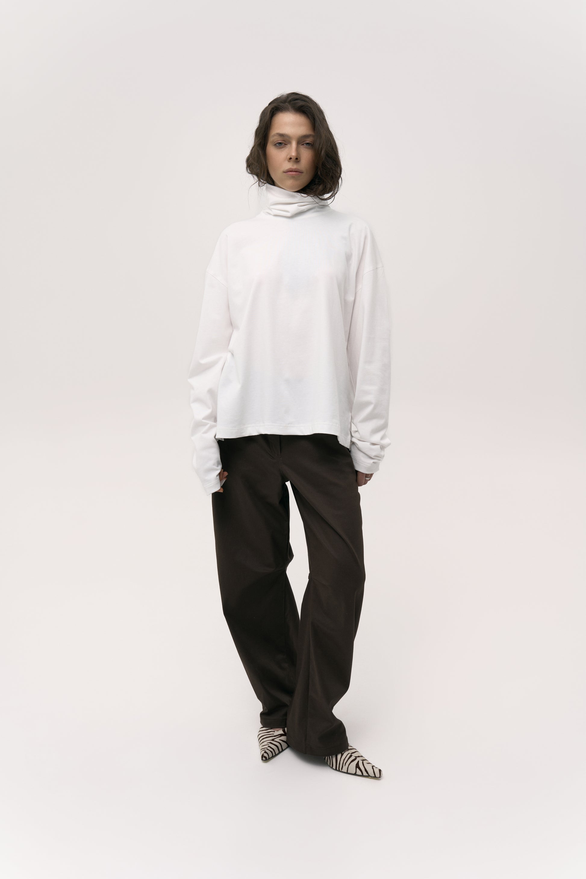 Лаконічний оверсайз лонгслів, що поєднує в собі мінімалізм форми та максимальний комфорт. Виконаний із 100% щільної бавовни преміум'якості, він забезпечує приємні тактильні відчуття та довговічність. Широкий високий воріт додає виробу структурованості та сучасного вигляду, ідеально доповнюючи повсякденний образ.