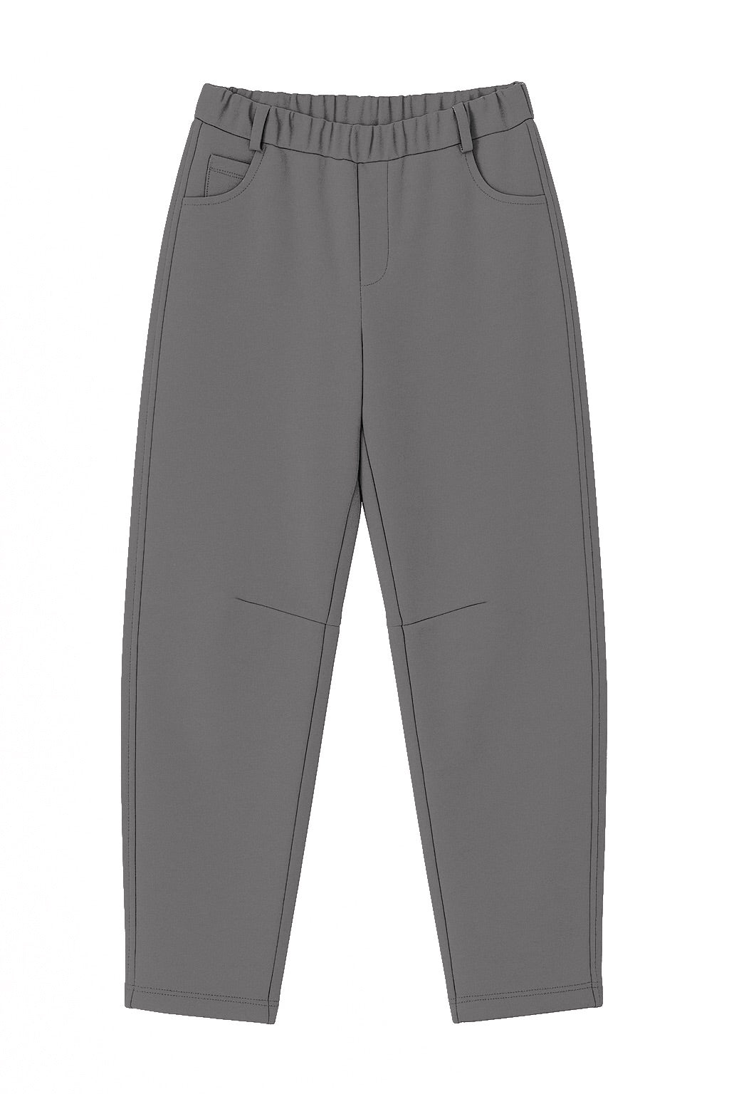 Комфортні брюки середньої посадки з м'якого трикотажу. Завдяки еластичному поясу з резинкою та шльовкам під пояс вони забезпечують зручну посадку та універсальність у стилізації. Мають бокові кишені, зручні регульовані фіксатори з резинкою внизу та декоративні шви на колінах, що створюють особливу посадку.